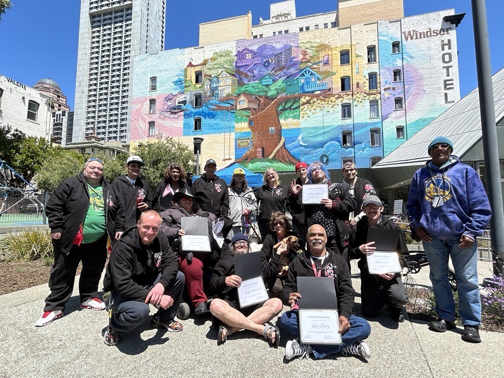DISH is an industry leader in working to prevent overdose deaths for residents struggling with substance use. In 2024, DISH built on a strong foundation of peer- led harm reduction programs and launched an expanded Peer Responder Training program. The program has been incredibly successful, resulting in multiple years with zero overdose deaths at the Minna Lee. In response to the program’s proven results, DISH was awarded a multi-year grant by the Department of Public Health to expand the work. We are training residents from multiple organizations to become Peer Responders, acting as harm reduction resources for their communities focused on overdose prevention in Permanent Supportive Housing.